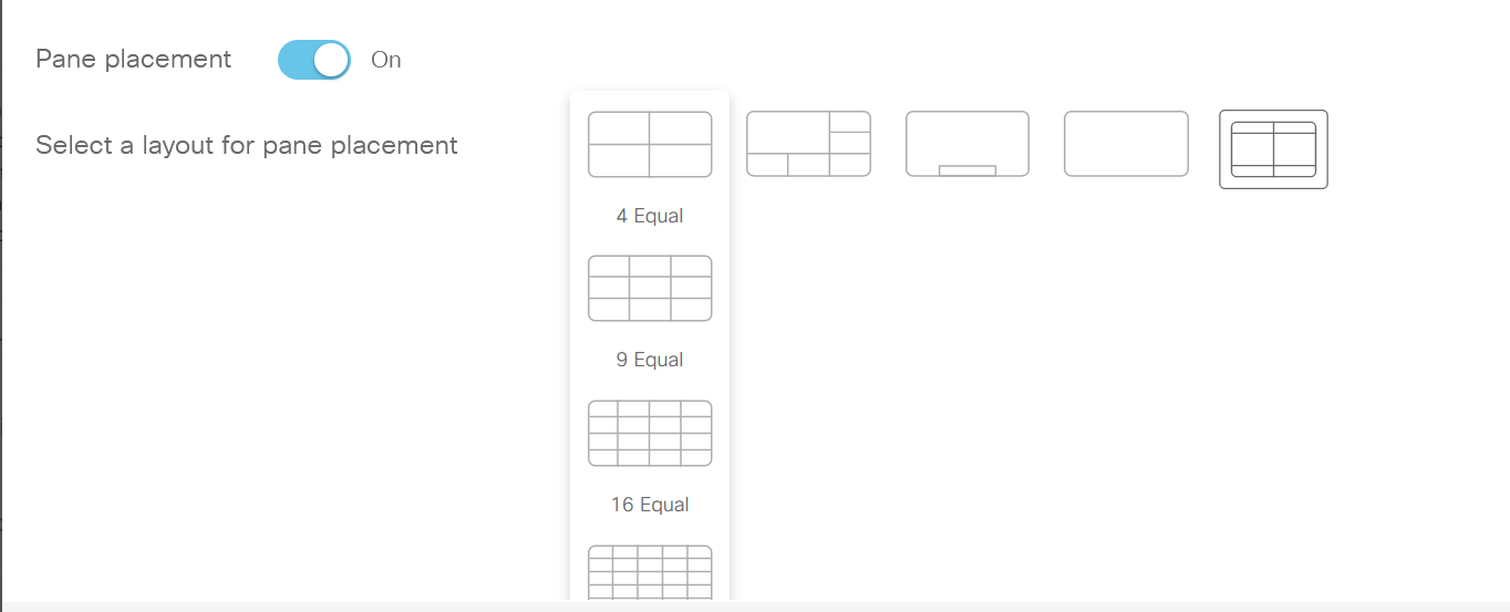 Note: When the Active Speaker feature is in use from the Meeting Server, Pane 1 is always reserved for Active Speaker. The pane assignment changes from Pane n to Pane n+1. For more information, see Cisco Meeting Server Administrator Quick Reference Guide Screen Layouts, Pane Placement, and Customizable Layouts.